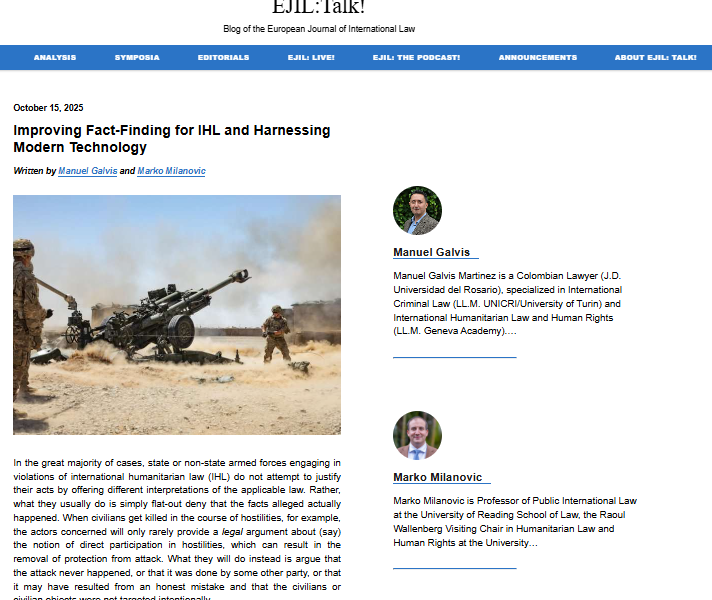 ICMD was featured in a blog contribution in the Blog of the European Journal of International Law on 15 October 2025. Read the full article here: https://www.ejiltalk.org/improving-fact-finding-for-ihl-and-harnessing-modern-technology